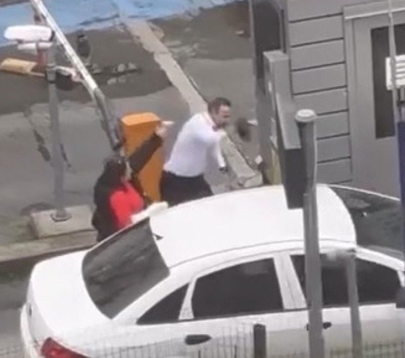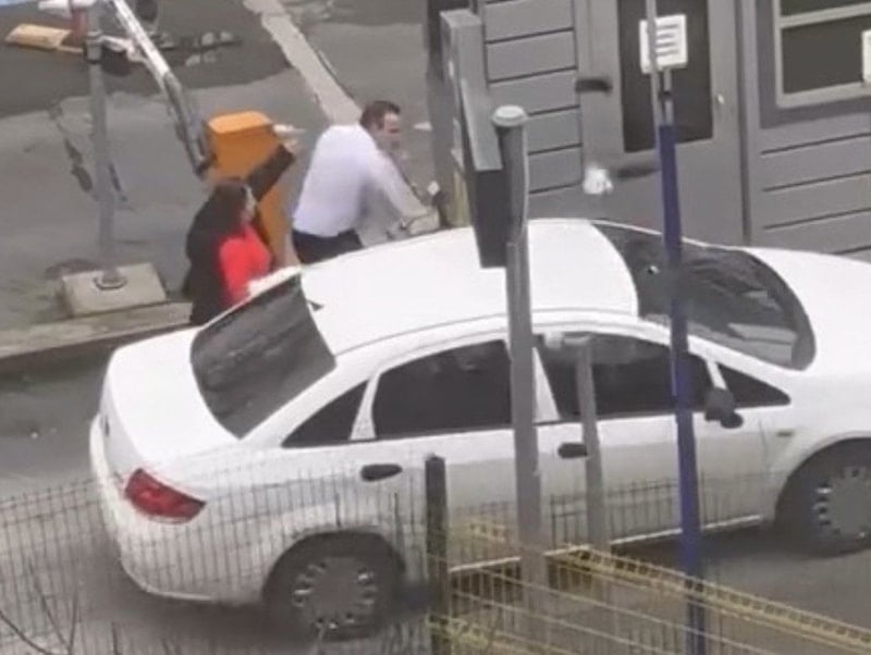 Tartışma, otomobil sürücüsünün bariyere çarparak otoparka girmesiyle sona erdi.