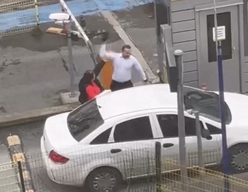 İstanbul Kadıköy’de bulunan otoparkın girişinde, sürücü ile sokakta ilerleyen başka sürücü arasında yol verme nedeniyle tartışma çıktı.