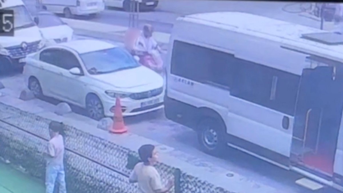 - Kaza anı güvenlik kamerasına yansırken, yaralı hastaneye kaldırıldı ve otomobil sürücüsü gözaltına alındı.