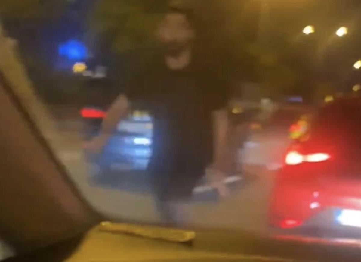 Daha sonra aracın önünü kesen saldırgan, arabasından hızla inerek karşı tarafın arabasını yumrukladı.