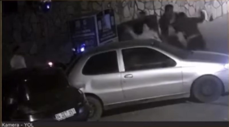 Üsküdar'da sürücüler arasında yol verme nedeniyle tartışma çıktı. Geri manevra yaparak otomobile çarpan sürücü, diğer sürücü tarafından darbedildi. Taraflar arasında çıkan kavgayı çevredekiler cep telefonu kamerasıyla kaydederken olay binanın güvenlik kamerasına da yansıdı.