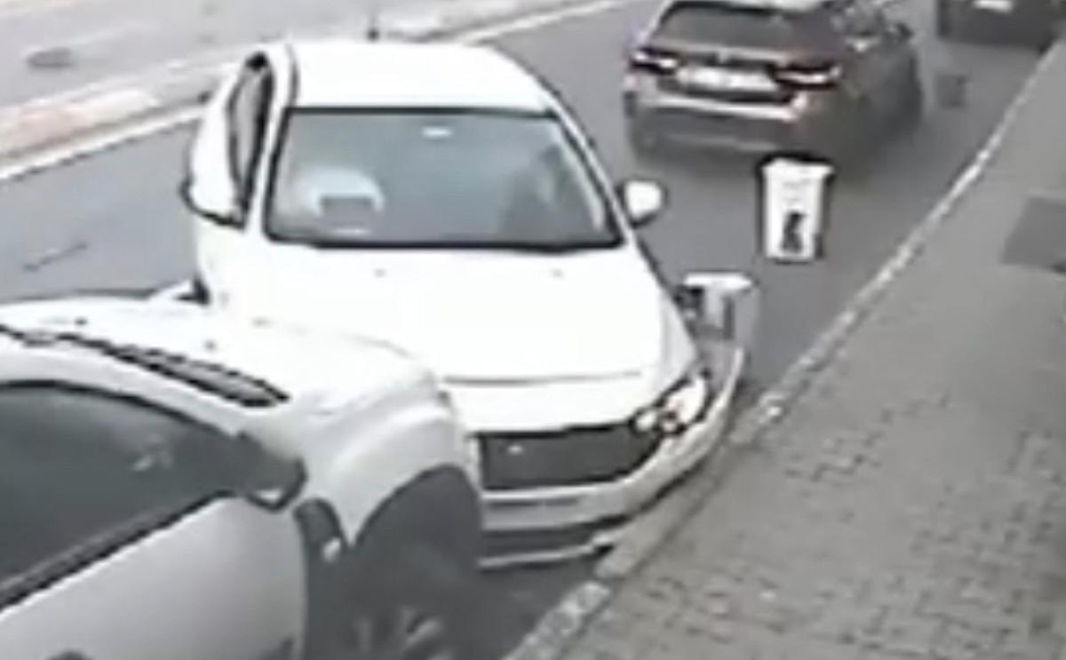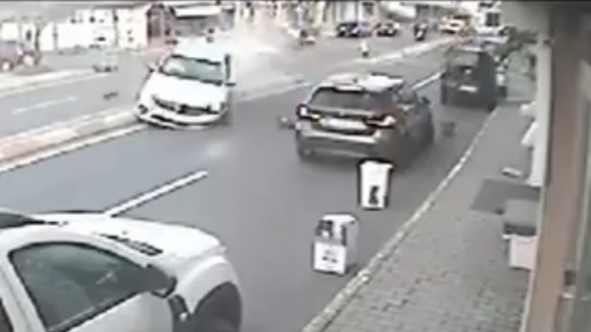 Görüntülerde, cadde üzerinde seyir halinde olan otomobilin yola çıkan otomobile çarptığı, daha sonra ise refüjü aşarak karşı şeritte park halinde bulunan cipe çarptığı anlar yer aldı.