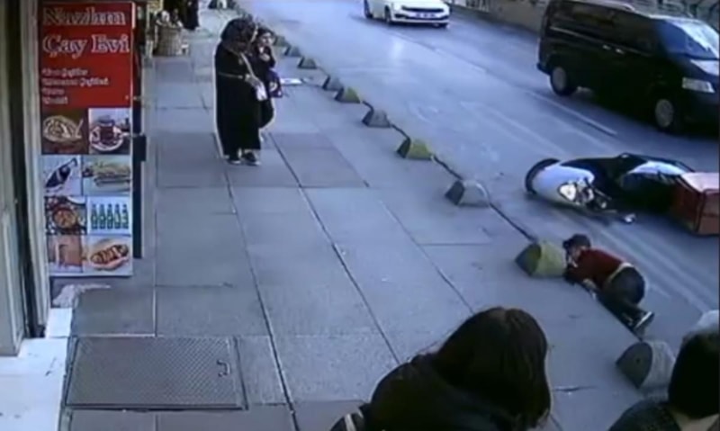 İhbar üzerine olay yerine gelen sağlık ekiplerinin ilk müdahalenin ardından hastaneye götürdüğü çocuğun gün içerisinde taburcu edildiği öğrenilirken kaza anı, bir iş yerinin güvenlik kamerasına yansıdı.