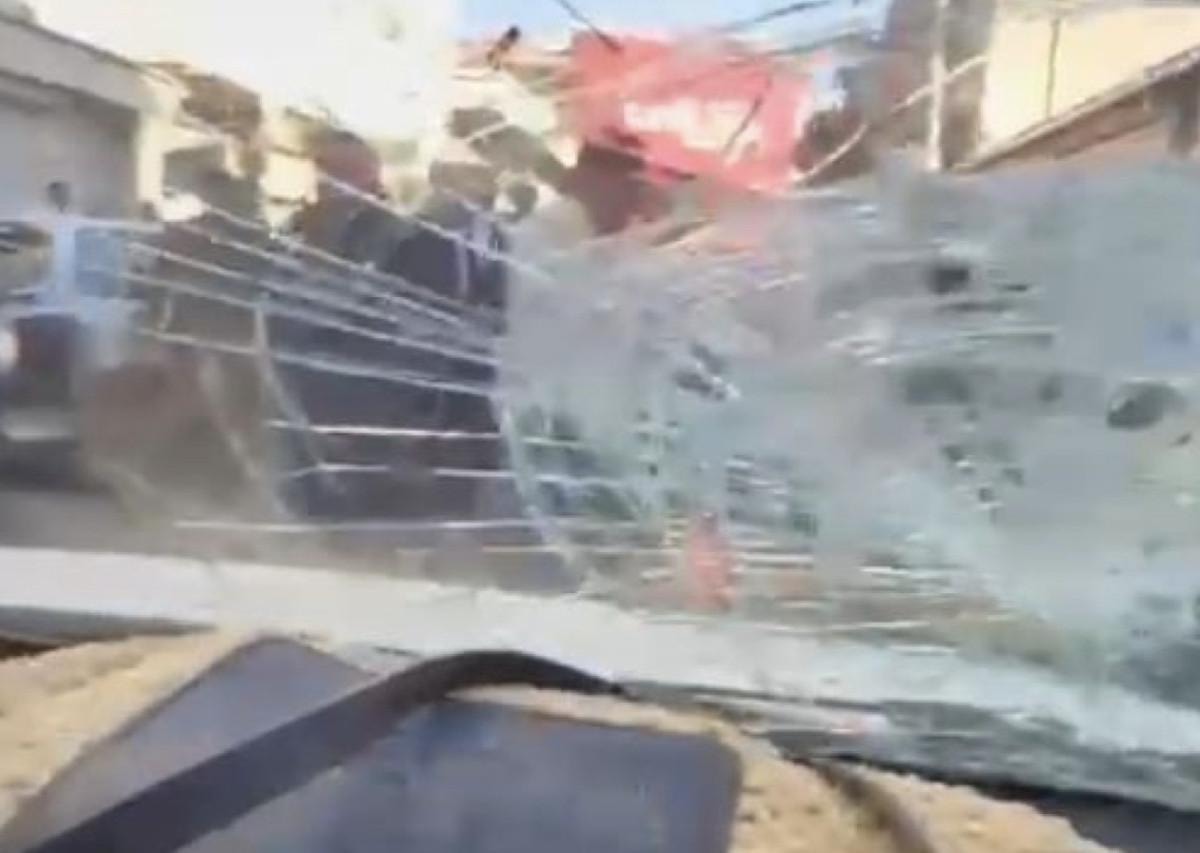 Bunun üzerine konvoydaki bazı şahıslar, araca taş ve yumrukla saldırdı.