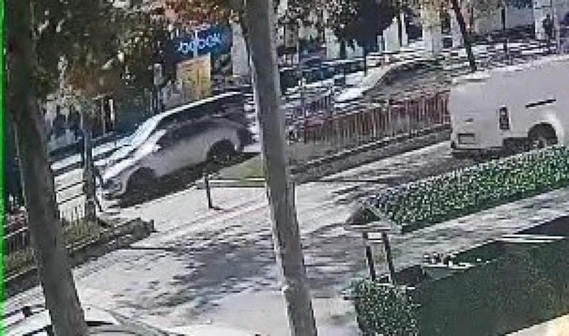 Ayrıca kaza anı, çevredeki bir iş yerinin güvenlik kamerasına yansıdı.