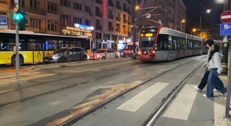 Kaza nedeniyle tramvay seferleri durduruldu.