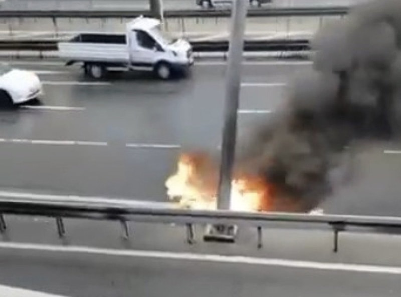 Yangın, yoldan geçen diğer araçların sürücüleri tarafından cep telefonuyla görüntülendi.