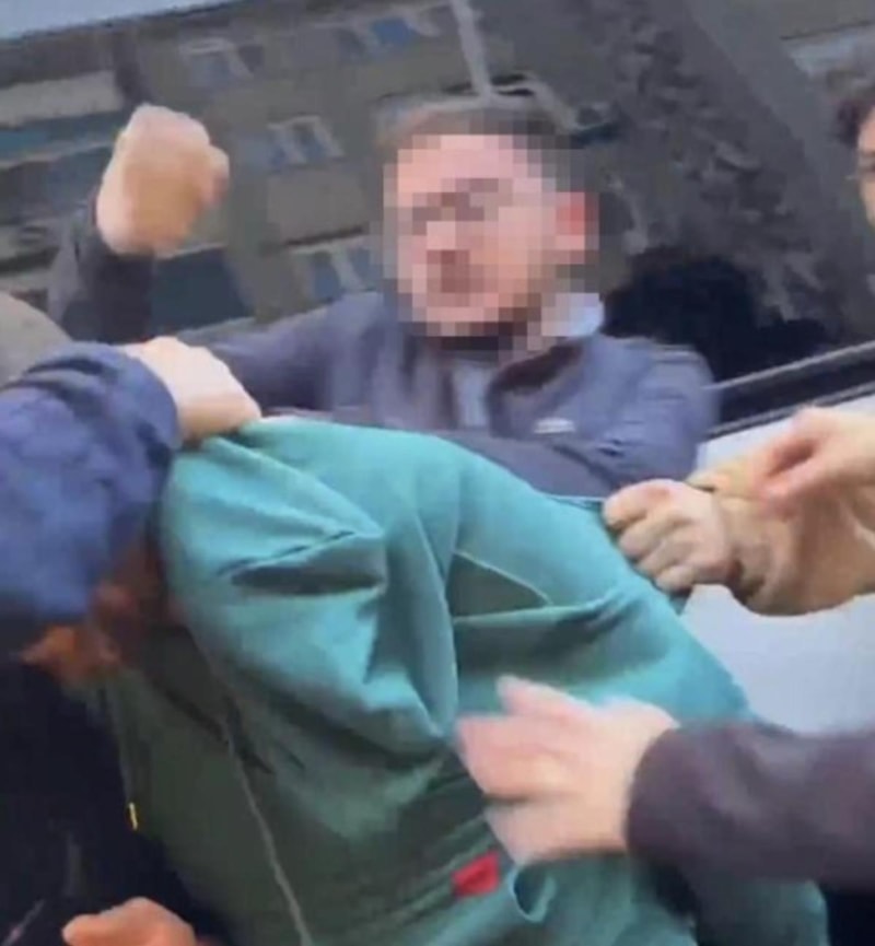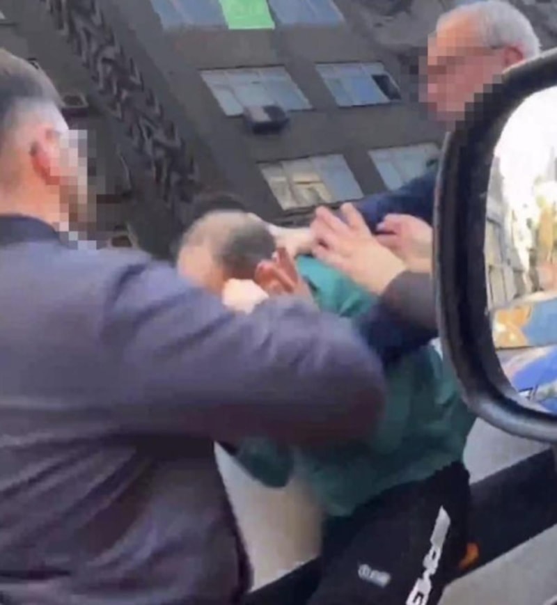 O esnada iddiaya göre tartıştığı kadına laf söyleyen adam, çevredeki vatandaşların da olaya dahil olmasıyla adeta meydan dayağı yedi.