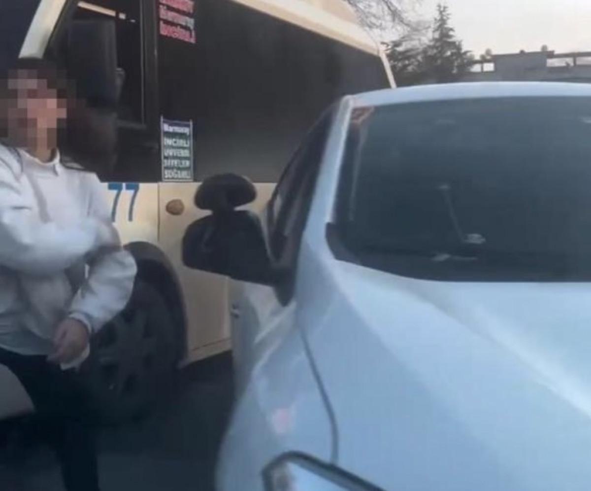 İki kadın sürücü tartışmaya başladı: Aracın camını yumrukladı
