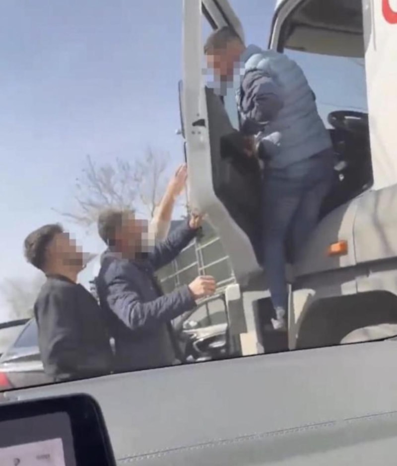 Yumrukların havada uçuştuğu anlarda sürücüyü, yine araya giren vatandaşlar güçlükle kurtardı.