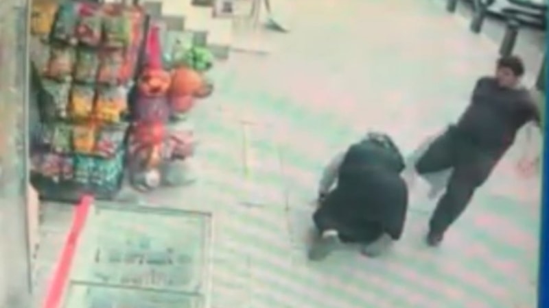 Çevredeki vatandaşların tepkisine neden olan saldırı anı, saniye saniye bir iş yerinin güvenlik kamerası tarafından kaydedildi.
