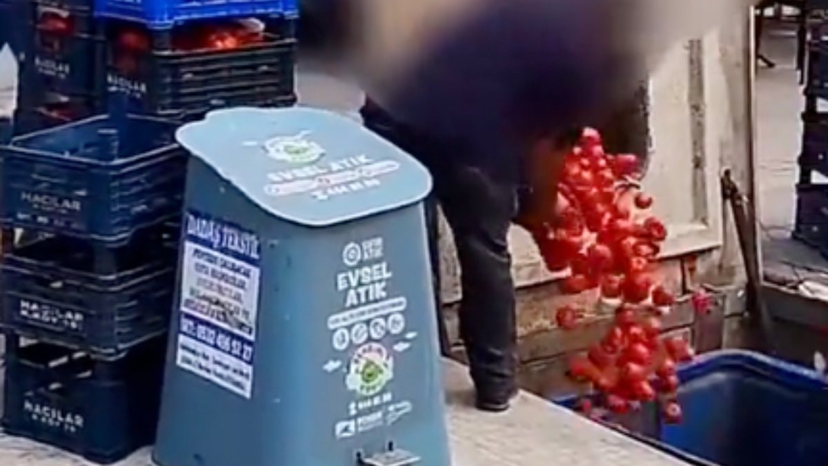 Pendikli TV'nin aktardığı görüntülere göre İstanbul'da hizmet veren zincir marketlerden birinin Pendik ilçesindeki şubesinde, çalışanlar kasalarca domatesi çöpe döktü.