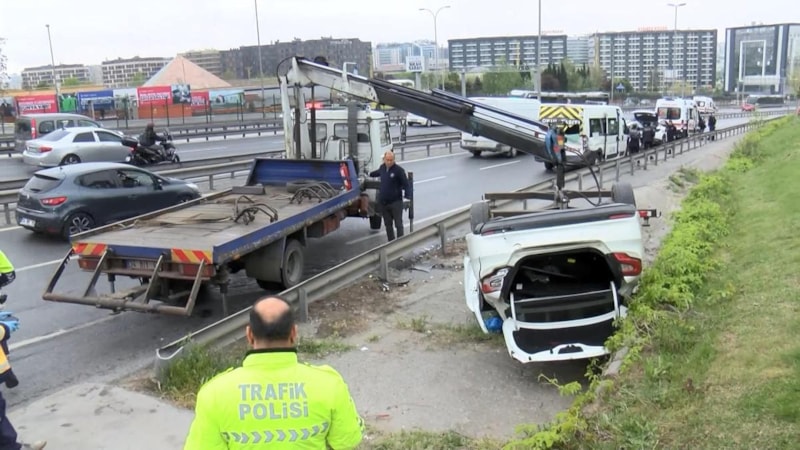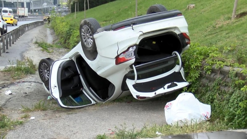 Otomobil daha sonra ters dönerek yol kenarına savruldu.