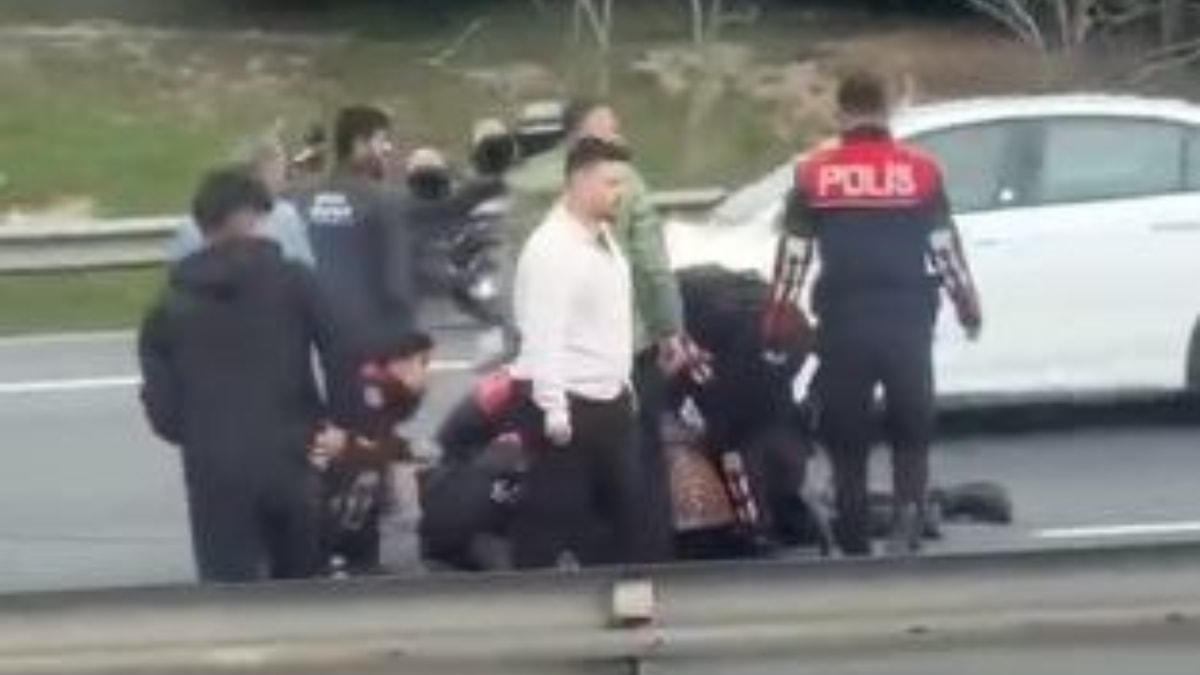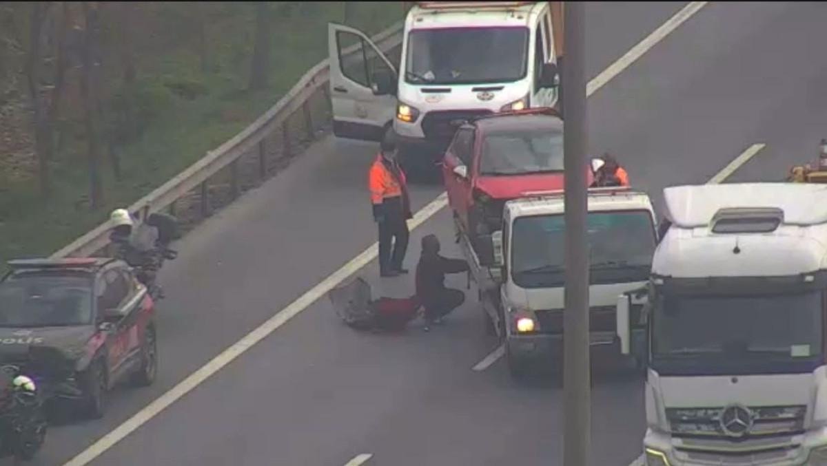 İstanbul Küçükçekmece'de, Edirne istikametinde seyir halinde olan motosikletli polis memurları ile bir otomobil zincirleme kazaya karıştı.