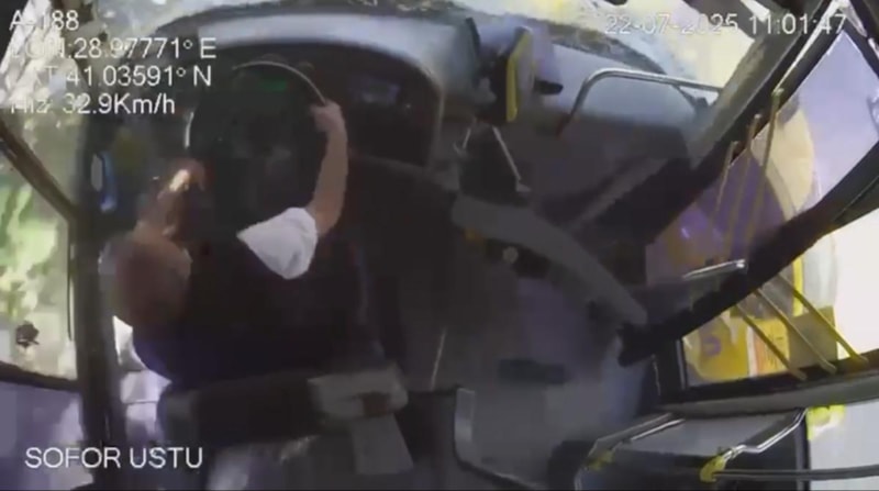 OTOBÜS HAREKET HALİNDEYKEN ŞOFÖR AYAĞA KALKTI