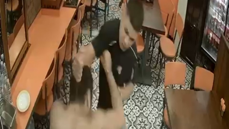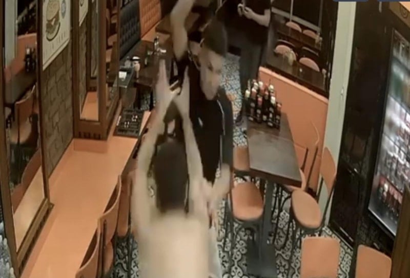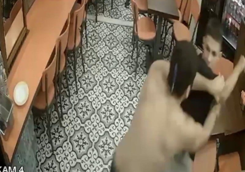 Kavga sırasında iş yeri çalışanları tarafları ayırmaya çalıştı.