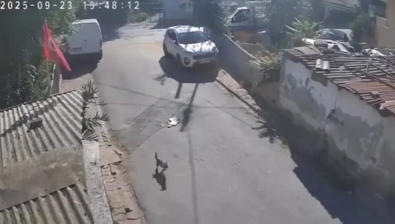 Görüntülerde, patlama nedeniyle kameranın şiddetle sallandığı, o sırada sokakta bulunan iki kedinin korkuyla kaçtığı anlar dikkat çekti.