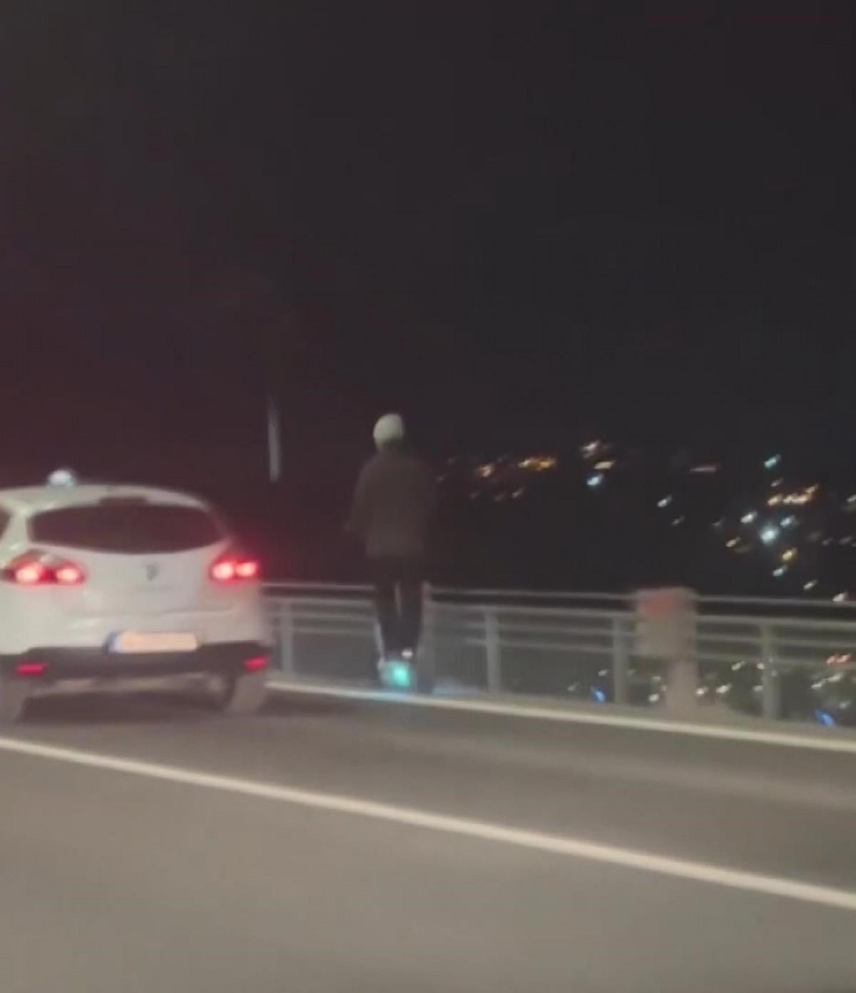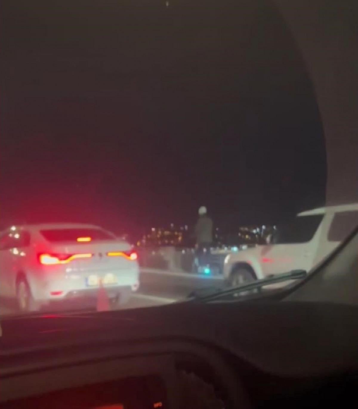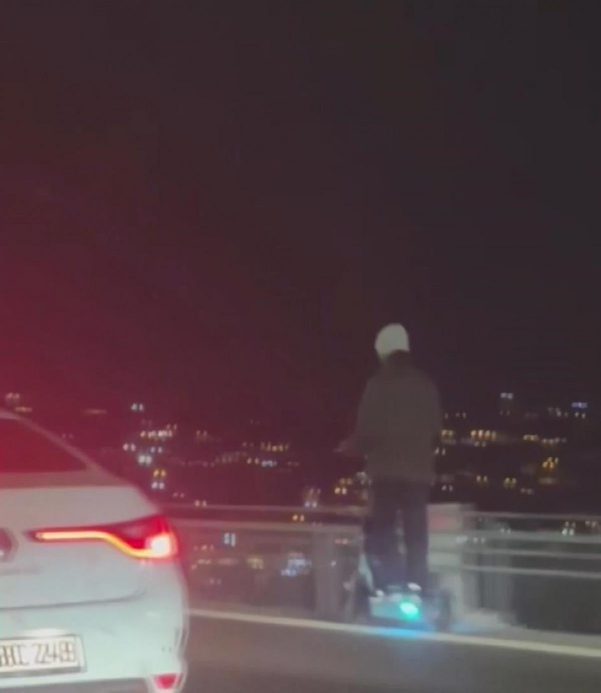 Geçtiğimiz cumartesi günü saat 21.45 sıralarında 15 Temmuz Şehitler Köprüsü’nde meydana gelen olayda, bir sürücü yasak olmasına rağmen köprüde skuter kullandı.