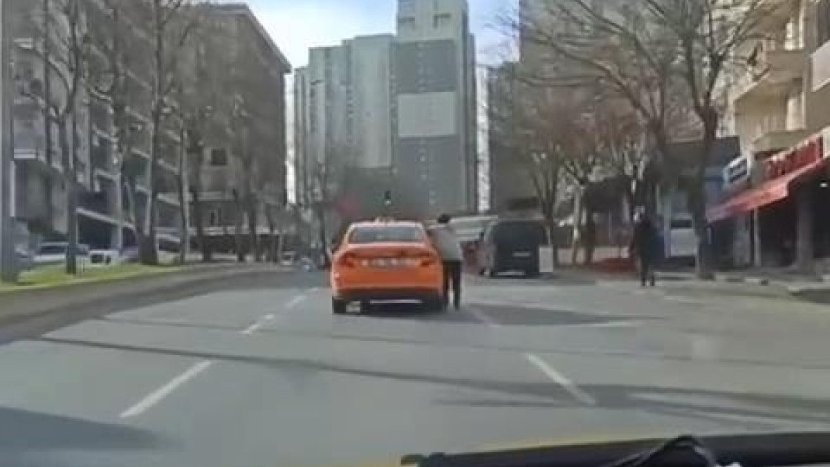 Yanından geçen araçlara da aldırış etmeyen genci, taksi şoförünün fark edip etmediği ise bilinmiyor.