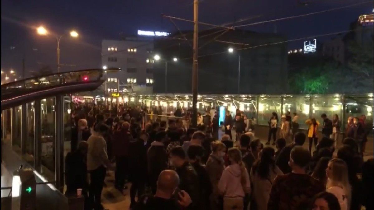 İstanbul'da dün akşam saat 19.00'da Bağcılar - Kabataş tramvay hattı Eminönü durağında oluşan yoğunluk cep telefonu kamerasına yansıdı.