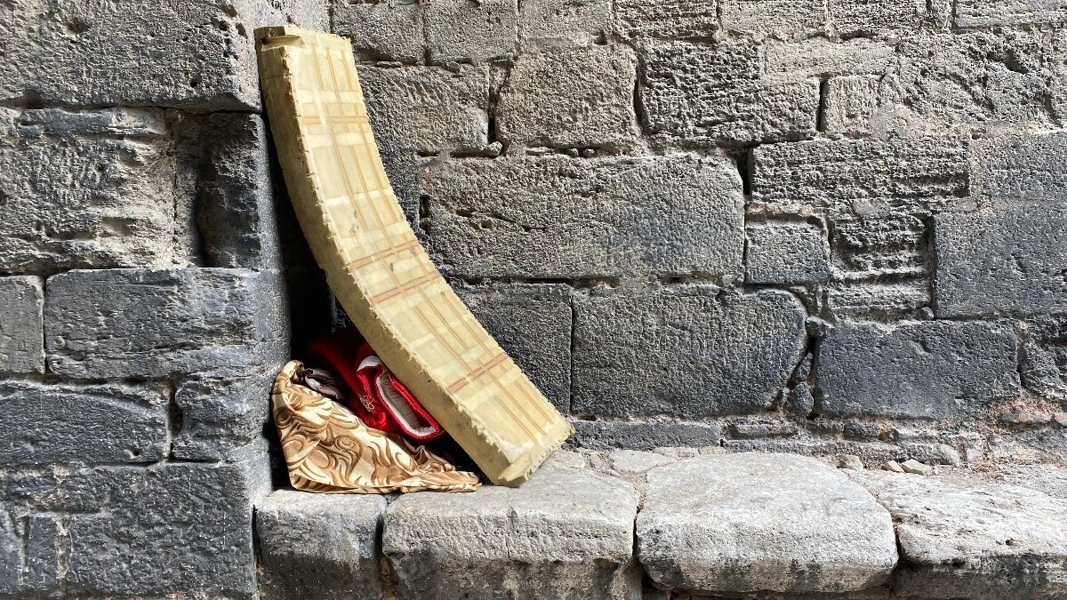 Çevresinde çöplerin de olduğu kapının iç kısmında ise orada yaşayan evsizlere ait eşyalar bulunuyor.