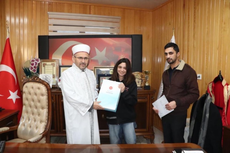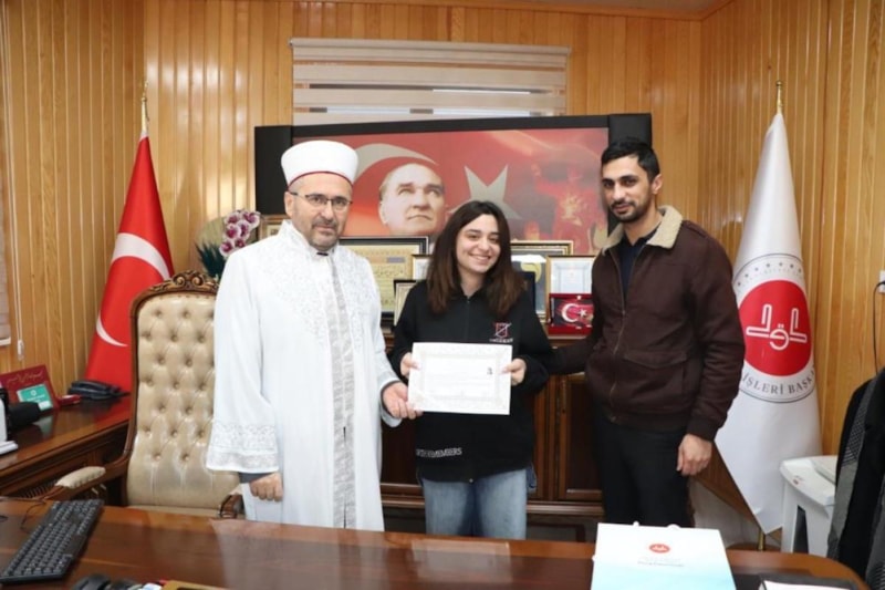İl Müftüsü Üstündağ, Müslüman olan Eda'yı tebrik ederek "ihtida belgesi" ile birlikte, Kur'an-ı Kerim ve ilmihal hediye etti.