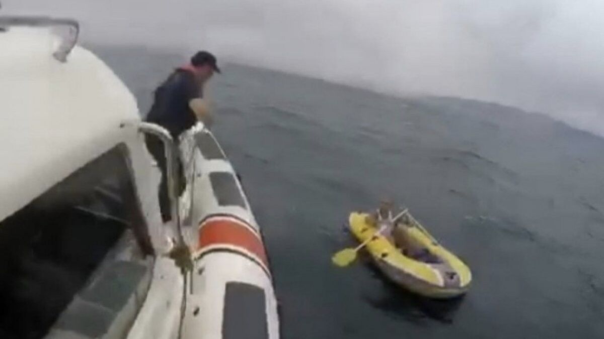 Ekipler, tek kişilik bot içerisinde, dalgaların arasında elindeki küreklerle denizde ilerlemeye çalışan bir kişiyi fark etti. Bota yanaşan ekipler, Süleyman Emir Kırmızı'yı tekneye çıkardı. O anlar, cep telefonuyla saniye saniye kaydedildi.