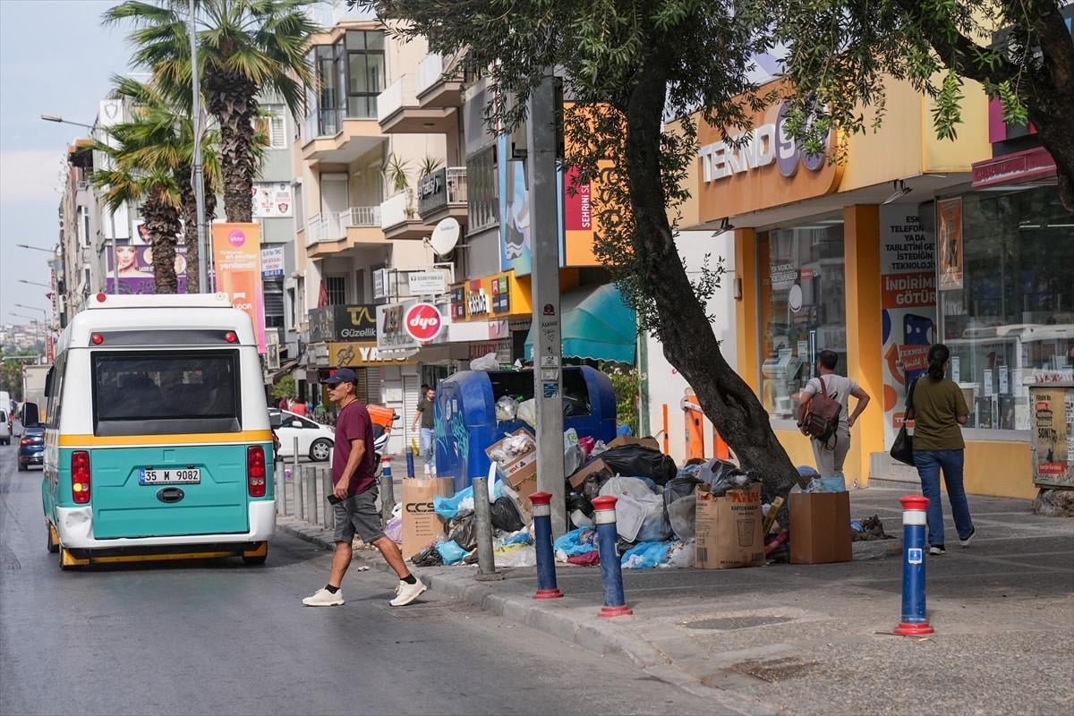 - İzmir'in Buca Belediyesi'nde maaş alamayan işçilerin iş bırakma eylemi nedeniyle sokaklar çöplerle doldu.