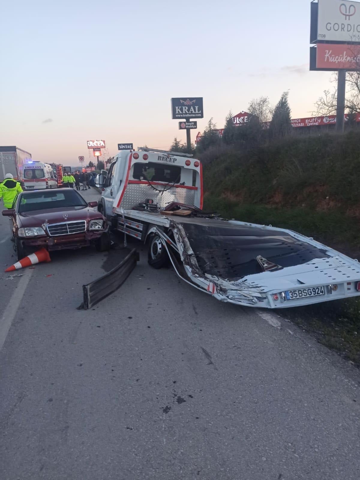Bu sırada aynı istikamette seyreden Muhammed Soylu (25) yönetimindeki pikap, önünde ilerleyen kamyon nedeniyle emniyet şeridine geçerek 2 araca çarptı.