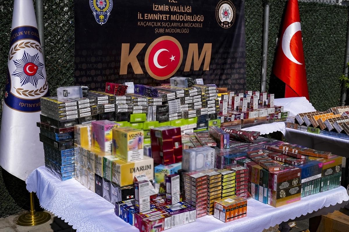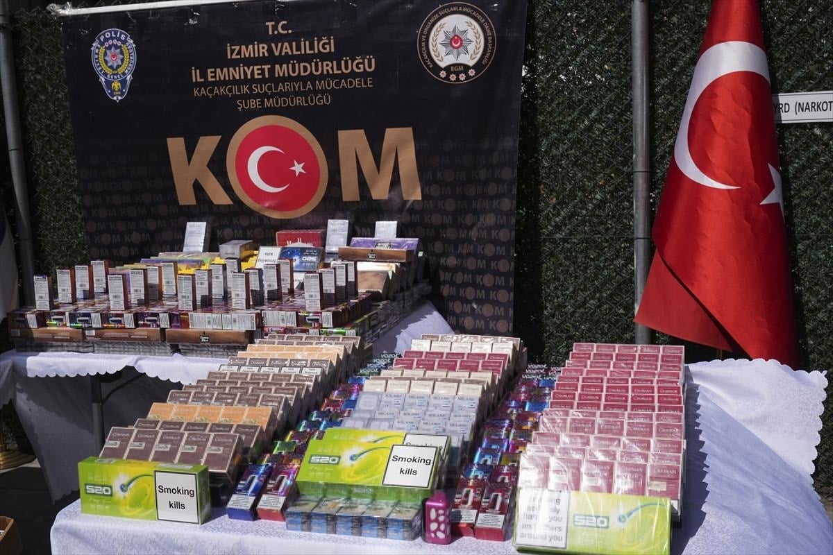 - İzmir'de düzenlenen operasyonda 70 bin 305 puro, 21 bin 650 paket sigara ve 2 bin 420 elektronik sigara ele geçirildi.