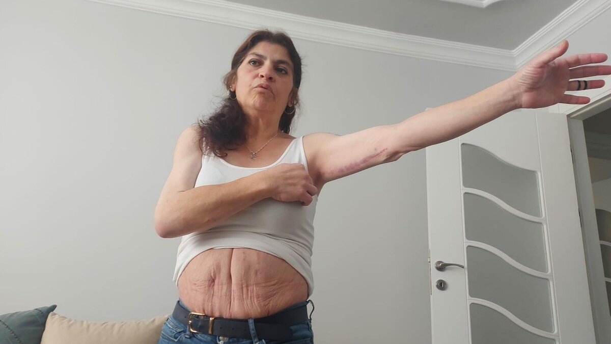 İngiltere'nin başkenti Londra'da yaşayan ve tercümanlık yapan Selda Gümüş (50), 2015'te olduğu obezite ameliyatı sonrası vücudunda sarkma meydana geldi.