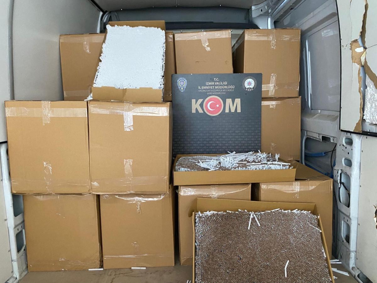 Aliağa, Buca, Bornova, Çiğli, Güzelbahçe, Karabağlar, Konak ve Ödemiş ilçelerinde ekiplerin aramalarında; piyasa değeri yaklaşık 5 milyon lira olan 1 milyon 93 bin 500 içi doldurulmuş makaron, 3 bin 887 paket gümrük kaçağı sigara, 2 bin 939 gümrük kaçağı puro, 114 kilo nargile tütünü, 280 litre taklit etiketli etil alkol, 647 elektronik sigara cihazı, 57 elektronik eşya, 4 gümrük kaçağı cep telefonu, 64 sikke, yüzük ve bilezik gibi 25 tarihi eser, 1 tabanca, 1 şarjör, 32 tabanca fişeği ve 1 av tüfeği ele geçirildi. 21 şüpheli hakkında adli işlem yapıldı.