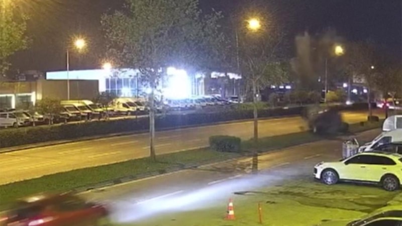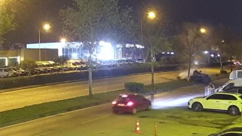 Kaza anı çevredeki bir iş yerinin güvenlik kamerasınca kaydedildi.