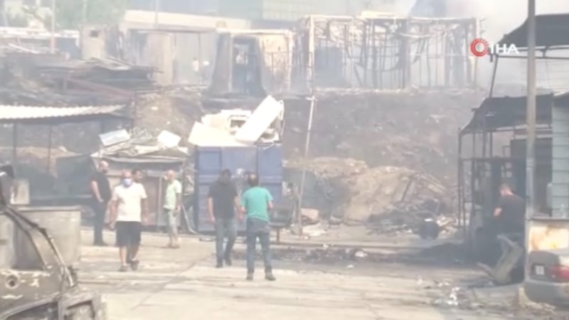 Yanan iş yerlerine itfaiye ekipleri müdahale ederken, iş yerlerinin yanışını izleyen vatandaşlar korku dolu anlar yaşadı.