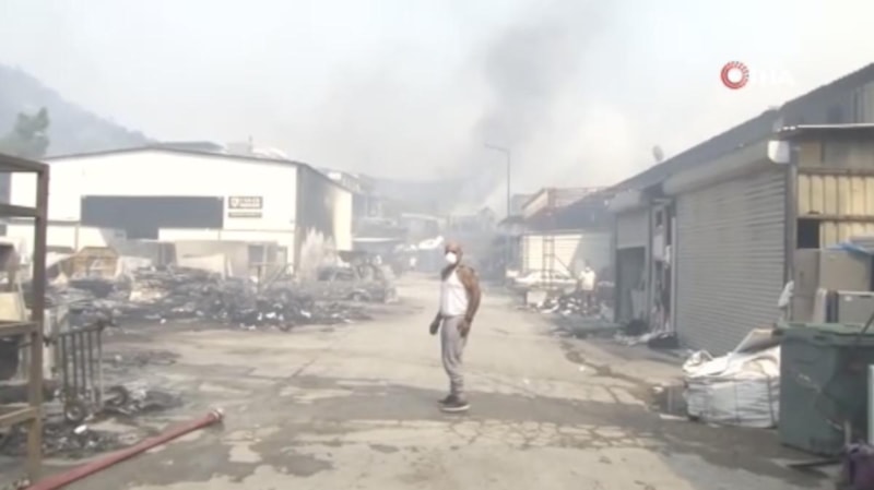İzmir’in Karşıyaka ilçesinde başlayan orman yangını, rüzgarın da etkisiyle büyüyerek yerleşim alanlarına sıçradı. Karşıyaka Sanayi Bölgesi’ne de iş yerlerine alevler sıçrarken, vatandaşlar iş yerlerinin yanışını izledi.