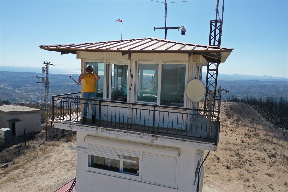 Onların "kuleyi terk et" çağrısına olumsuz yanıt veren genç ormancı, dumanla dolan ve ateş çemberinin ortasında kalan kulede mesaisini sürdürdü.