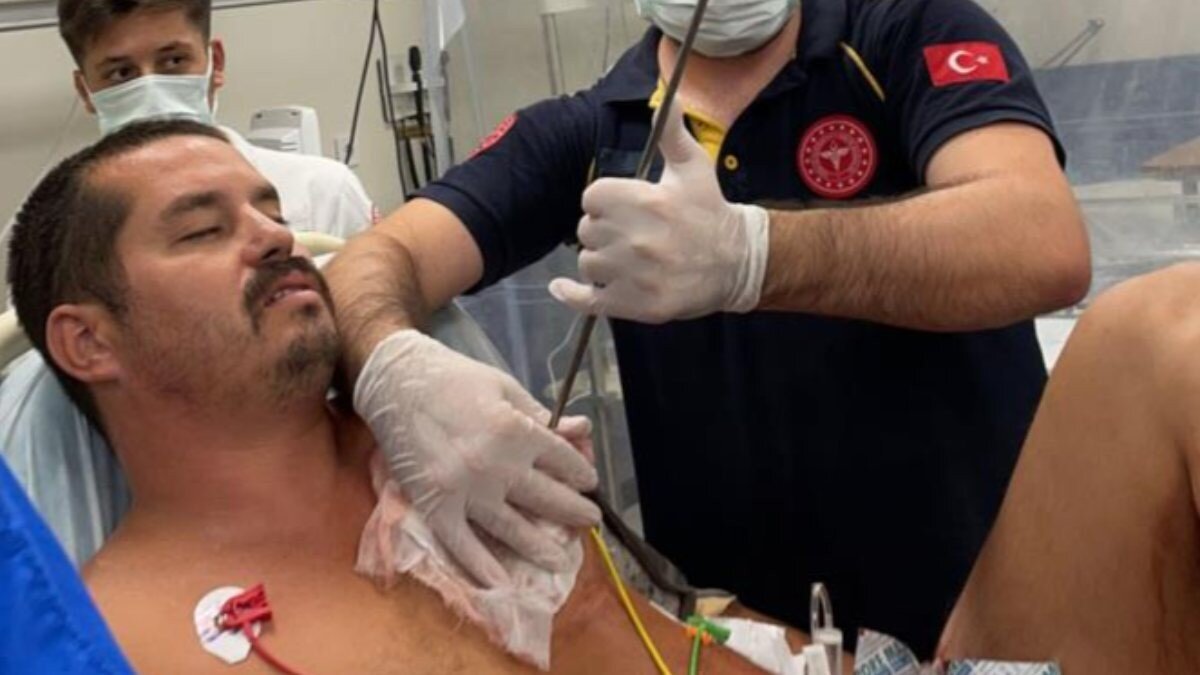 Sonugür'e ilk müdahaleyi yapan acil servis doktorları, çekilen grafide zıpkının 21 santimetre içeriye girdiğini belirledi.