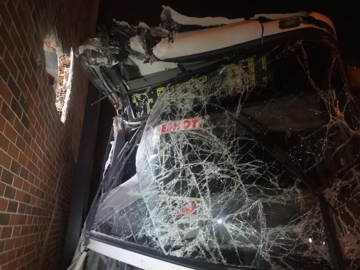 Kazada otobüs şoförü Erhan Y. yaralanırken belediye otobüsünde ve alışveriş merkezinin duvarında hasar meydana geldi.