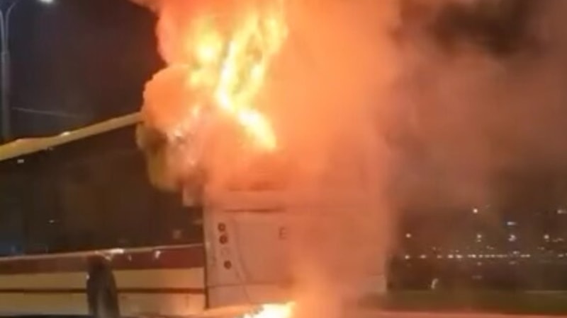 İtfaiye ekiplerinin müdahalesiyle alevler söndürülürken, otobüste hasar oluştu.