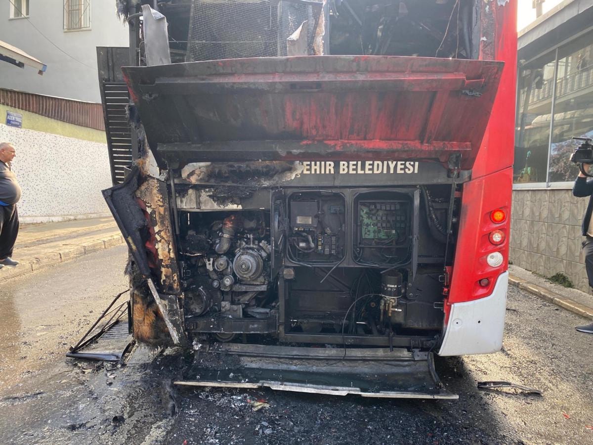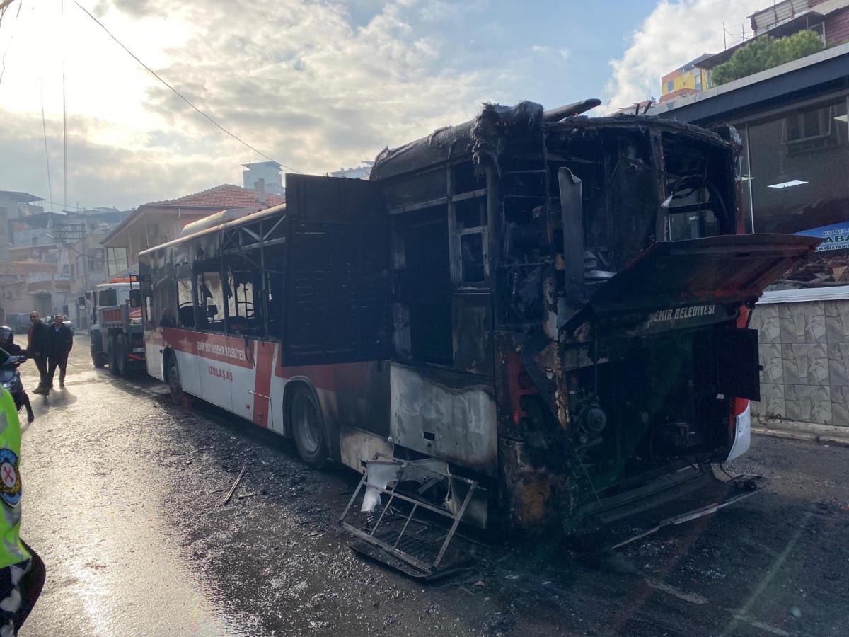 İhbarla olay yerine sevk edilen itfaiye ekipleri alevleri söndürürken, otobüs kullanılamaz hale geldi.