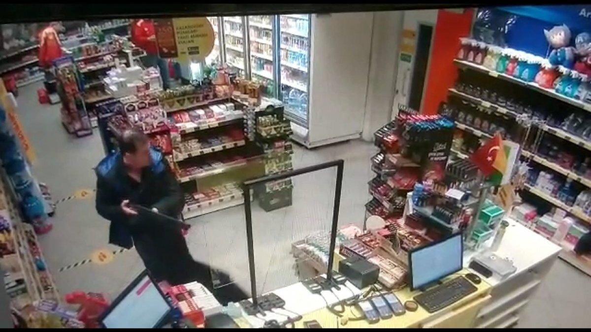 İzmir’in Bornova ilçesi Yeşilova Mahallesi Kamil Tunca Caddesi üzerinde bulunan bir benzin istasyonuna gelen Emre K (23), yanında getirdiği pompalı tüfeği market çalışanlarına doğrulttu.