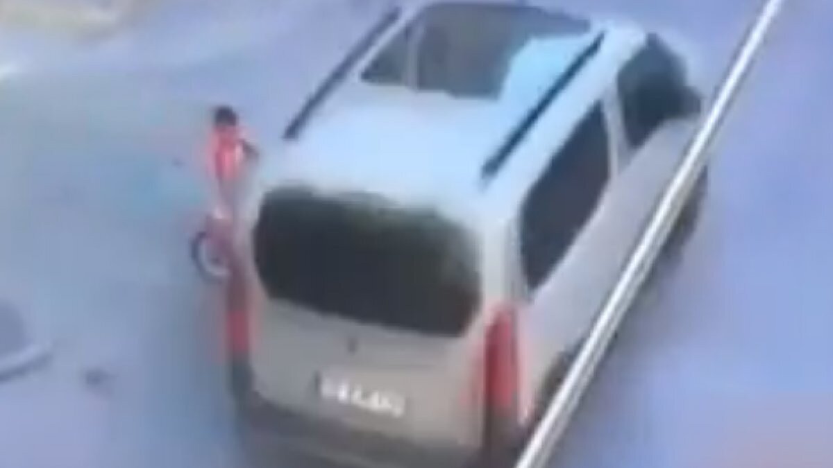 Çocuğun saniyeler ile aracın altında kalmaktan kurtulduğu o anlar ise güvenlik kamerası tarafından görüntülendi.