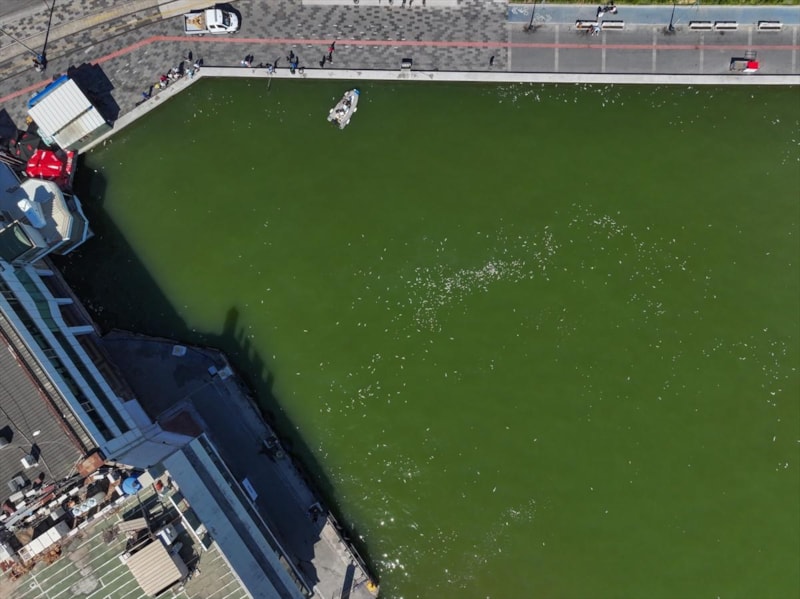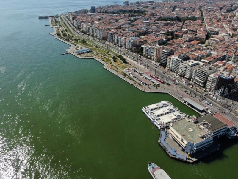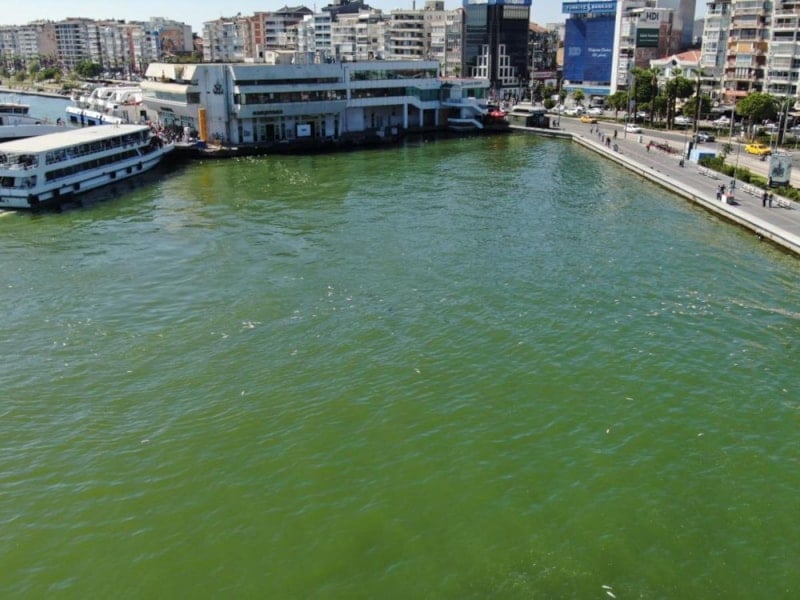Bugün ise Karşıyaka İskelesi’nde denizin bir bölümünün rengi yeşile dönerken, binlerce ölü balık ise su yüzeyine çıkarak kıyaya vurdu.