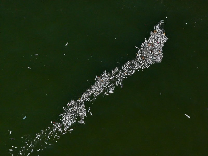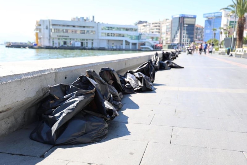 Özellikle kıyıdan toplanan binlerce ölü balık siyah çöp poşetlerine konuldu ve sahil boyunca metrelerce poşetler dolusu ölü balık olduğu görüldü.