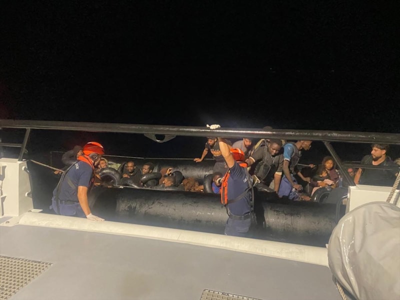 Bölgeye yönlendirilen Sahil Güvenlik botu tarafından durdurulan lastik bottaki 5'i çocuk 30 düzensiz göçmen yakalandı.