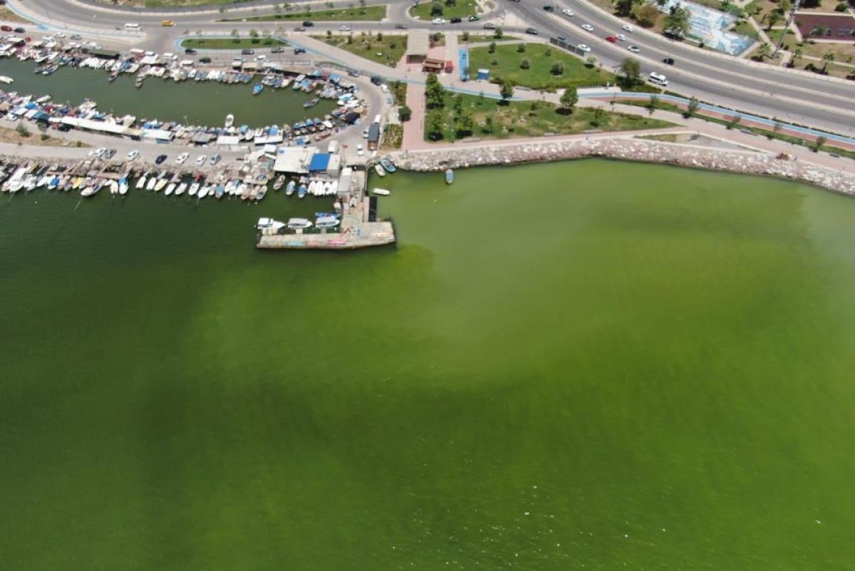 Karşıyaka ilçesindeki Mavişehir Balıkçı Barınağı civarında, denizin rengi yeşile döndü. Renk değişimi sahil boyunca fark edilirken, bir başka renk değişimi de Balçova ilçesindeki Çakalburnu Dalyanı mevkiinde yaşandı.