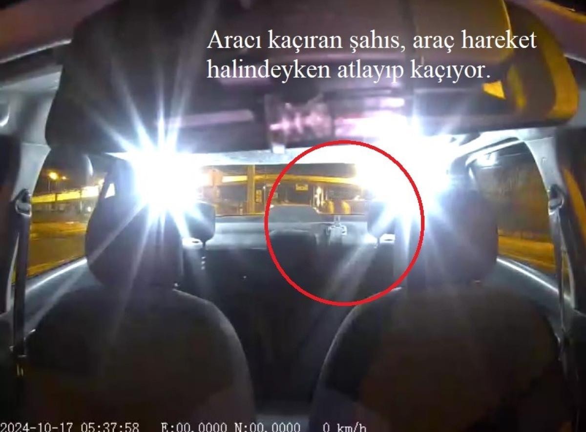 Hiçbir şey olmamış gibi araca yanaşan şahıs, anahtarı üzerinde bırakılan taksiye bindi.