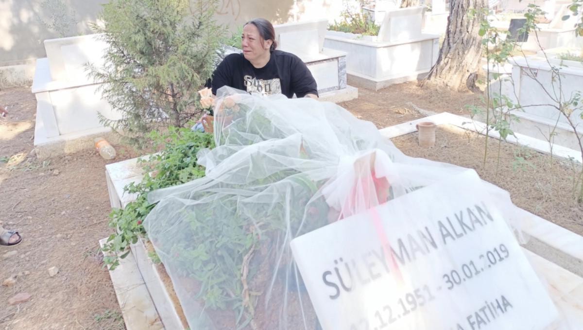 Kızının mezarına serdiği giyemediği gelinliğin duvağını gösteren Tarhan, "Kalk ben geldim. İyi ki doğdun” diyerek, gözyaşı döktü.