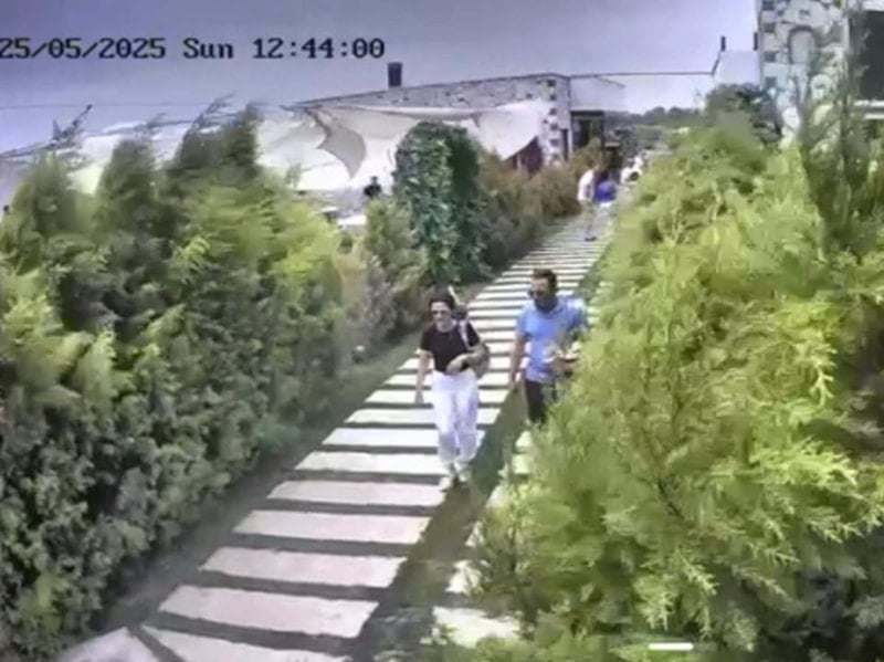 Güvenlik kamerasına yansıyan görüntülerde, çiftin kızlarıyla birlikte kapıya doğru yürüdüğü ve o sırada etkili olan kuvvetli rüzgar nedeniyle ağaçların savrulduğu görüldü.