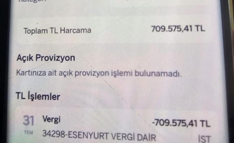 Bu sanal kart üzerinden 709 bin TL'lik işlem yapılıp İstanbul Esenyurt Vergi Dairesi'nde tanımadığım, büyük bir vergi mükellefinin borcu ödendi. Kartların kullanım geçmişine baktığımda, işlemin Esenyurt Vergi Dairesi'ne yapıldığını gördüm. Durumu fark edip bankayı aradığımda, ‘Hesaplarınızda bir hareket görünmüyor' denildi.